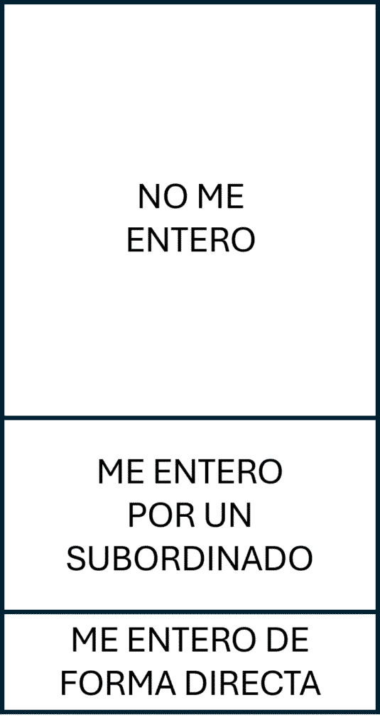 Esto me lleva a pensar en cómo fluye la información en las organizaciones. Hay información que no me llega y de la que no me entero; otra que me llega a través de las personas que dependen de mí; y otra que me llega directamente de quienes la generan. Este esquema, en principio, es válido para todos. Hasta aquí, todo correcto.