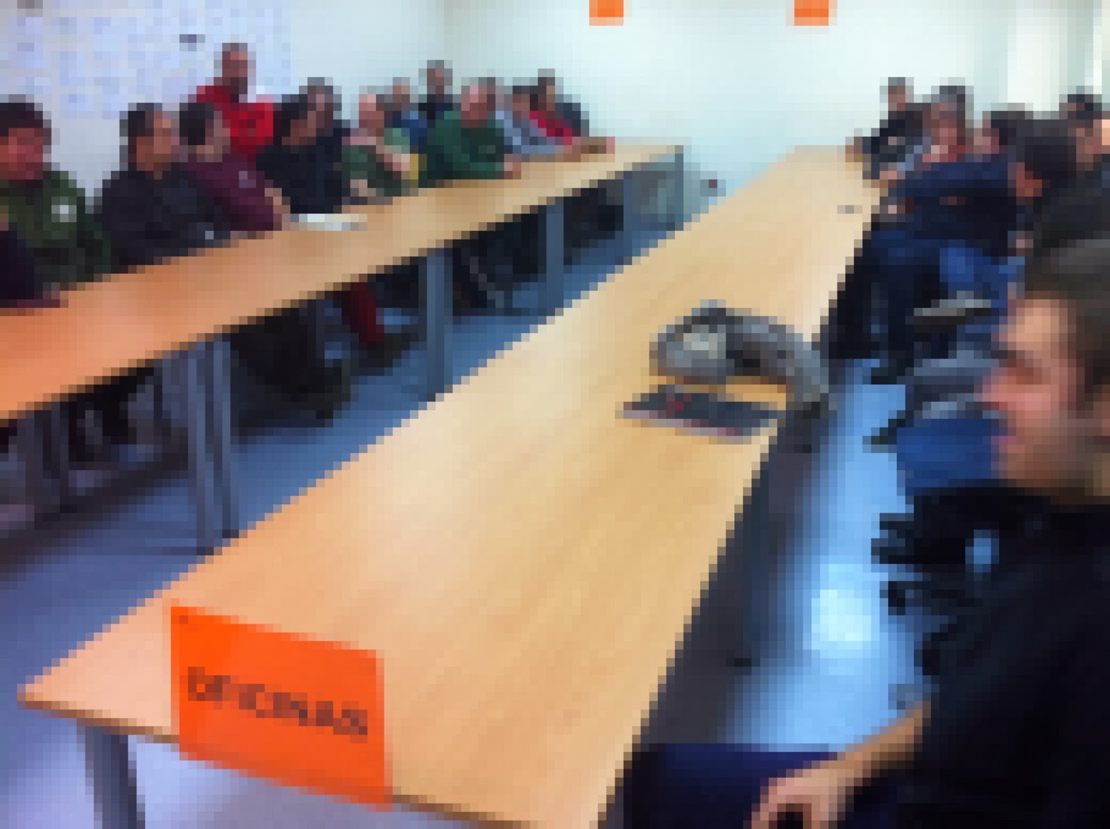 2. Voy a las sala a las 13h30, hora en que empezamos. Como era de esperar, los de oficinas están en un lado y los de produccion en el otro.